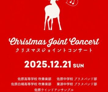 2025年12月21日(日)、佐原文化会館で“クリスマスジョイントコンサート”が開催されます。 入場無料で、開場13:00開演13:30となります。 出演は、佐原高校吹奏楽部、佐原白楊高校吹奏…